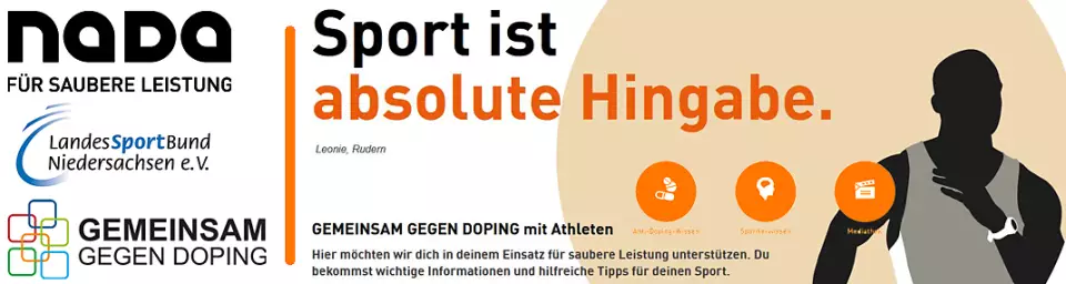 Wir stehen für sauberen Sport. Daher unterstützen wir alle zielführenden Aktivitäten in der Anti - Doping - Arbeit und engagieren uns in der Dopingprävention. Als Teil des Netzwerkes GEMEINSAM GEGEN DOPING vertreten wir Werte wie Fairplay und Chancengleichheit und setzen uns für die Gesundheit unserer Athletinnen und Athleten ein. Dazu arbeiten wir eng mit der Nationalen Anti Doping Agentur Deutschland (NADA) zusammen. Denn nur so können wir die positiven Werte des Sports schützen. Im Rahmen von GEMEINSAM GEGEN DOPING bieten wir Athletinnen und Athleten, Trainerinnen und Trainern, Eltern sowie allen weiteren Interessierten wichtige Hilfestellungen für sauberen Sport an.